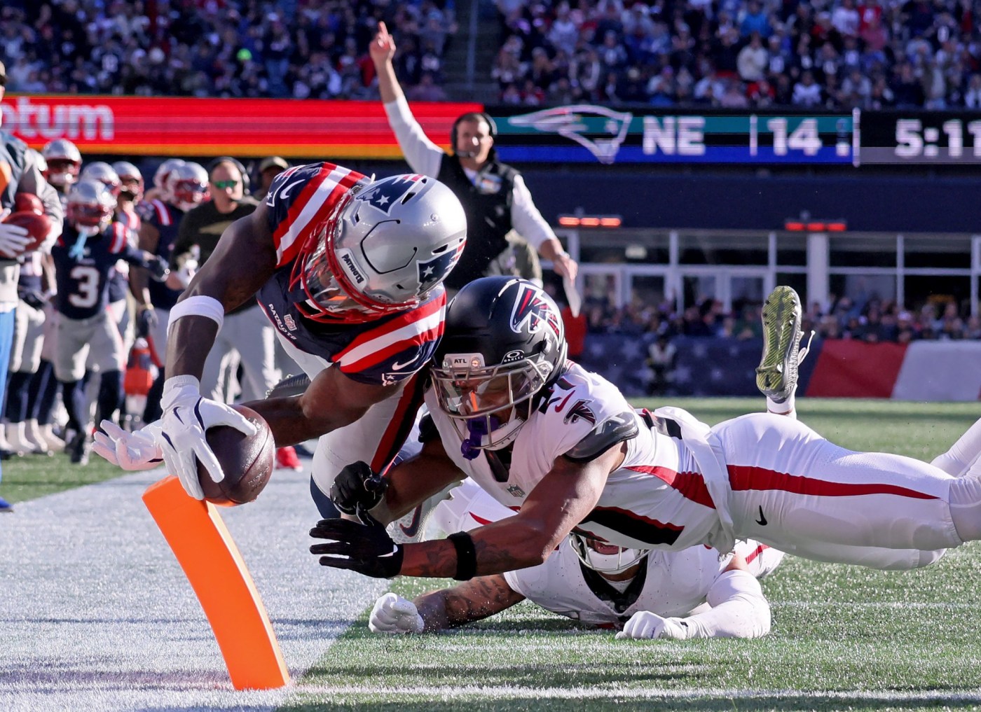 The Patriots were well on their way to increasing their lead to three scores when Maye was strip-sacked by Falcons edge defender Jalon Walker. Fellow rookie edge James Pearce Jr. recovered it and was chased down by Patriots left tackle Will Campbell at the 6-yard line. London caught another touchdown pass over Jones for the score.