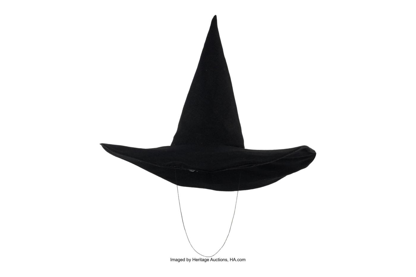 Heritage Auctions is putting an iconic black hat that Margaret Hamilton wore as the Wicked Witch of the West up for sale. The wool hat is quite large, measuring nearly 14-inches high with a 19.5-inch diameter brim. It also has a 22-inch elastic chin strap worn by Hamilton during flying scenes to keep it secure.