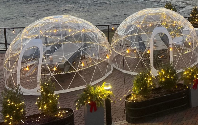 The igloo dining started at Wood-n-Tap in Farmington during COVID as a prevention measure, but became so popular that the restaurant not only kept them, but have now expanded and enhanced the experience.
