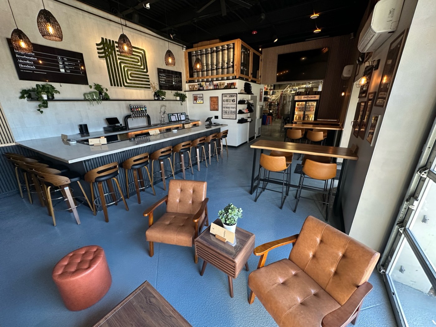 The tap room has growlers to go and beer on tap. They sell light snacks like chips, popcorn and in an unusual departure from that category, will carry canned fish because he likes it – including salmon, sardines, and trout. For additional food they can get casual food delivered from the neighboring The Blind Rhino.