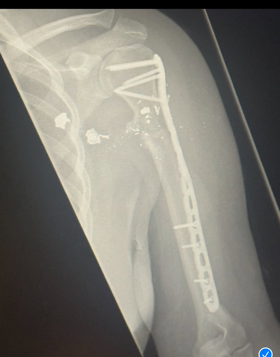 Surgeons later placed a metal rod in her arm; bullet fragments remain lodged inside, too dangerous to remove. Doctors told her it was only inches — mere inches — that kept her from dying that day.