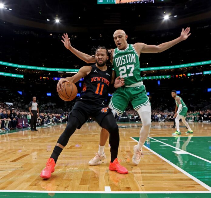 “You saw just the depth of our team throughout some of that game,” head coach Joe Mazzulla said after the Celtics’ 123-117 win over the Knicks at TD Garden. “It started with Hugo and finished with Josh and Jordan.”