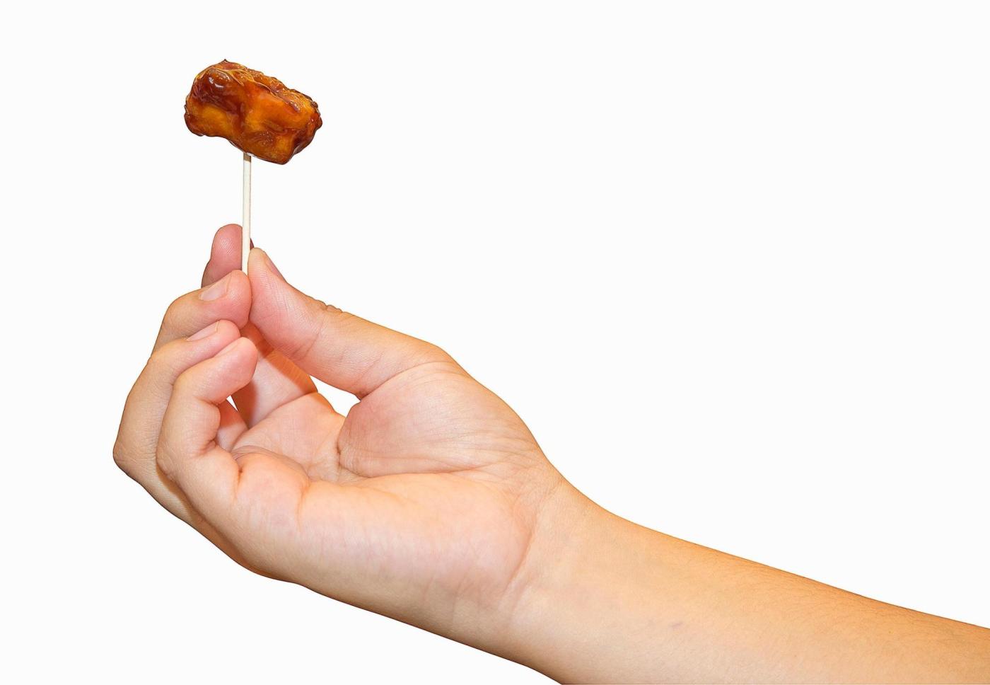 Thread one date and one piece of chicken onto each soaked skewer and place on baking sheet. Bake for 15 to 20 minutes, until chicken is cooked through.