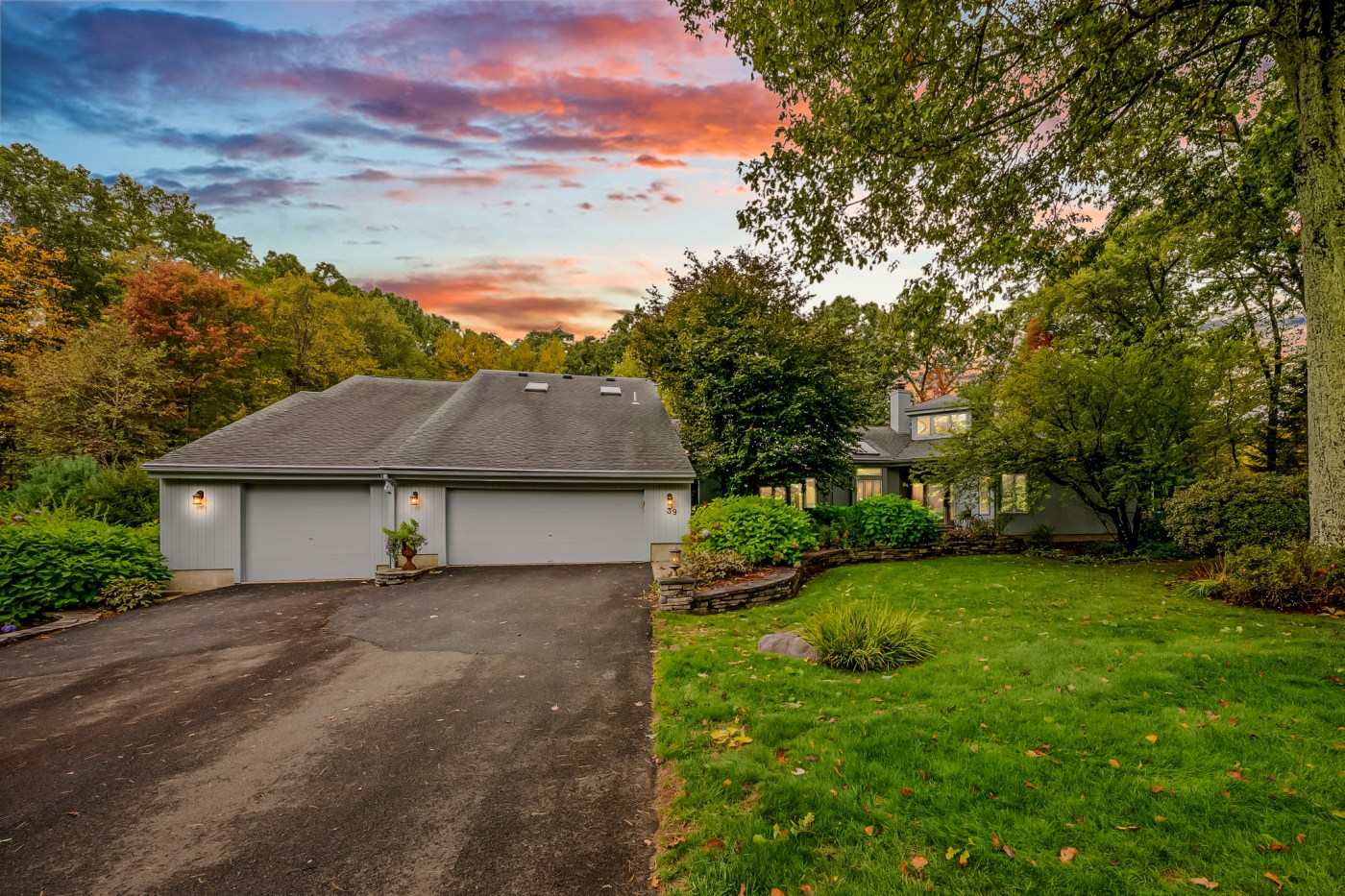 Upstairs is the primary bedroom suite with a walk-in closet and full bathroom with a double vanity, walk-in shower and skylights. In total, the home has five bedrooms with four full bathrooms and two half bathrooms. The lower level has two finished rooms along with a half bath and another 975 square feet of space.