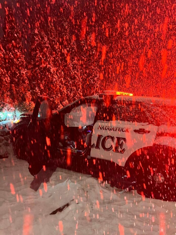 Police did not say if the officer was responding to an emergency, but that snowy conditions made roads slippery.