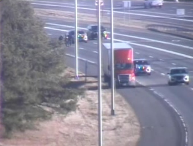A crash involving a pedestrian left the westbound side of I-84 in Manchester closed on Friday morning. (Department of Transportation)