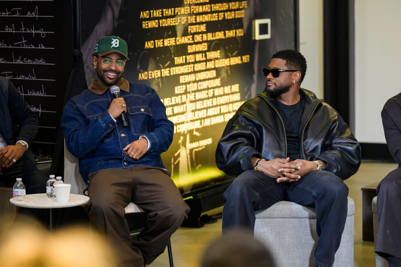 He was talking about his own rise from Boys & Girls Club member to a partner in the new facility, along with Usher, whom he sat courtside next to at the Detroit Pistons game later in the evening. Along with their foundations — Big Sean’s Sean Anderson Foundation, Usher’s New Look — the pair donated $1 million toward a new entertainment production hub at the center, located on Michigan Central’s fifth floor.
