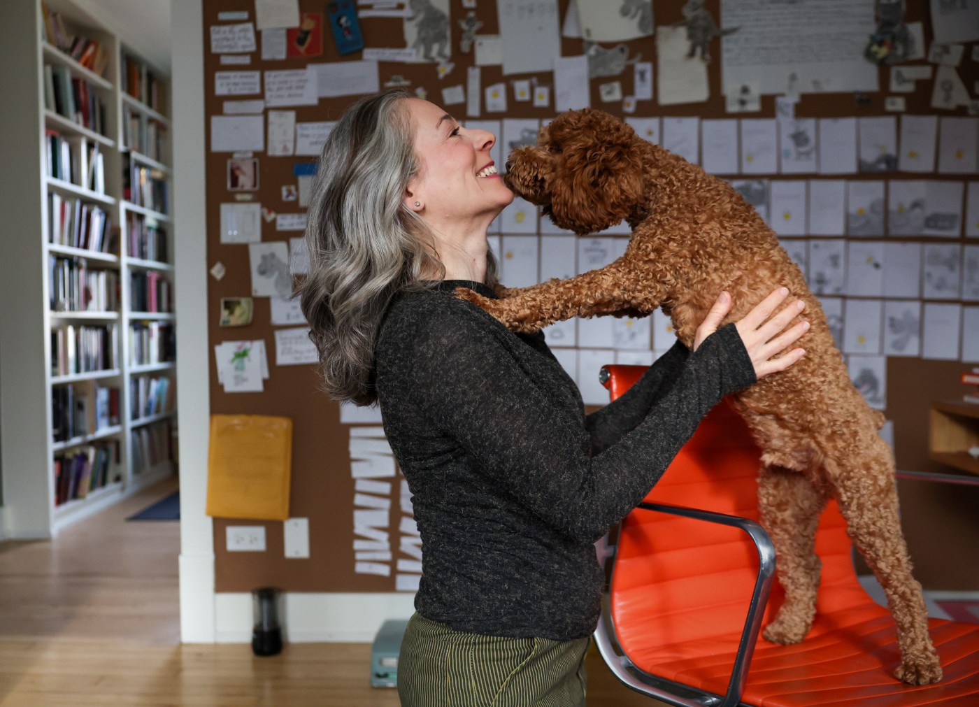 “So I was walking my dog by (Evanston Township High School) and he’s a little goldendoodle and this dog — no leash, but with a pink collar — suddenly appears in the alley. It’s a pit bull. I’m not anti-pit bull and I don’t mean to stereotype. She’s a little pit, but pits do have strong jaws and she attacks my dog. This was 2020. I have these horrible voice memos with my dog wailing. Anyway, now I’m in a crisis, and what am I doing to do? I’m terrible in a crisis. I also don’t want to hurt the other dog. If I let my dog off the leash he might get hit by car, so I’m frozen there, and I’m also trying to separate them, but I’m also thinking I can’t kick this dog — even with what’s happening in front of me, I couldn’t do it. The house on the corner has a Newfoundland standing in the yard, and the woman at the house sees me. She tells me to run for her car, but it’s actually a truck with a flatbed. She grabs a shovel and starts swinging at the dog, and my legs at this point are jelly but we make it into the flatbed and the pitbull is just launching itself at us, just like Cujo. My first thought was, Did I make this happen? I had started writing about a dog, so: Did I bring this on? That’s nutty, but it’s how you feel at times when things happen.”