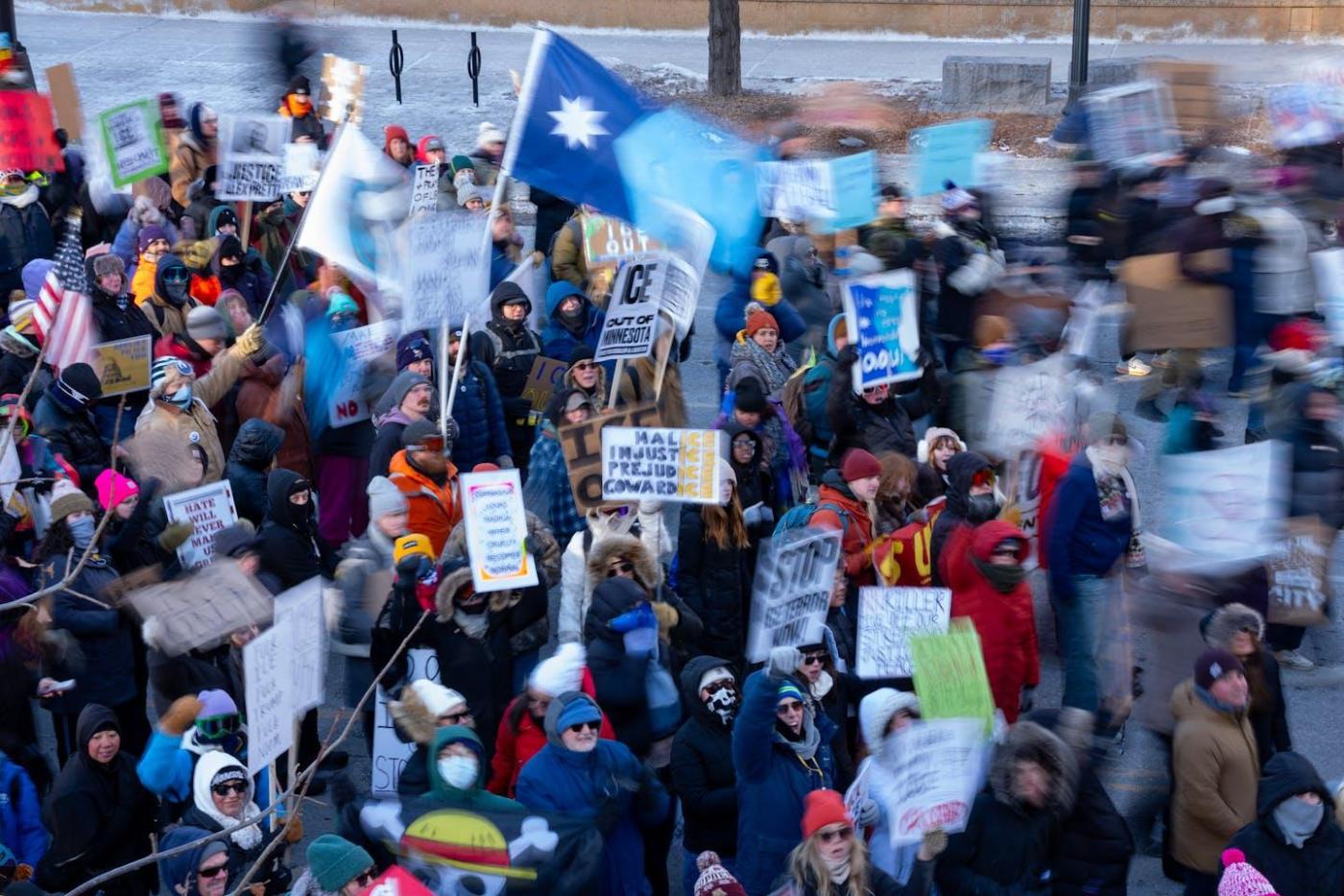 MINNEAPOLIS — Tens of thousands of protesters marching with signs. A chorus of whistles shrieking to alert neighborhoods to the presence of federal agents. Parents escorting neighborhood children to school. People on street corners holding up phones to record what they see.