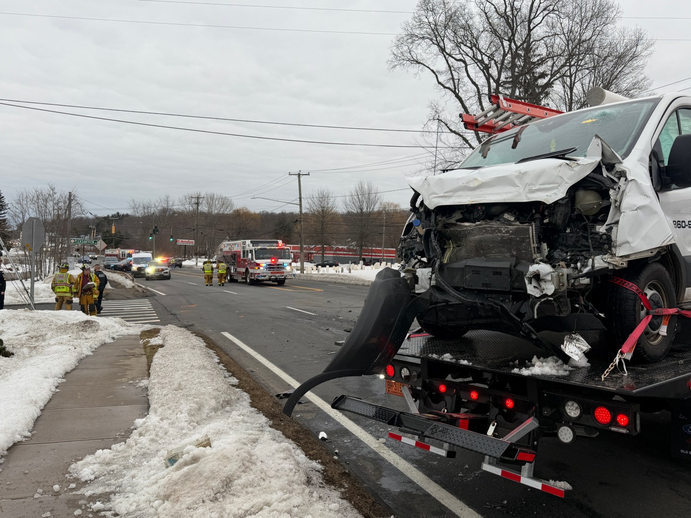 Vernon Police Department officers were called to the collision at Route 83 and Pleasantview Drive in Vernon about 3:35 p.m. and found a school bus and a Ford work van with heavy front-end damage, according to town officials.