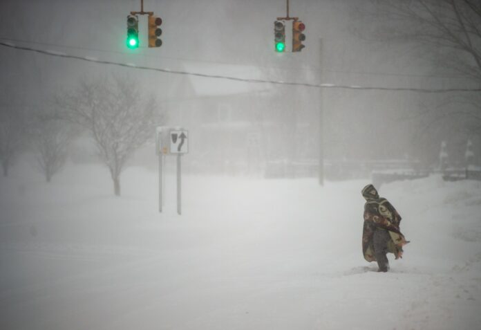 A blizzard warning remained in effect across the state until 6 p.m. on Monday, according to the National Weather Service.